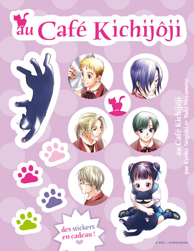 A l'occasion de la sortie du deuxième tome de la série Au café Kichijoji, prévu pour le 10 avril, les éditions Asuka vous offrirons une planche de stickers des plus "kawai"à l'effigie des personnages.