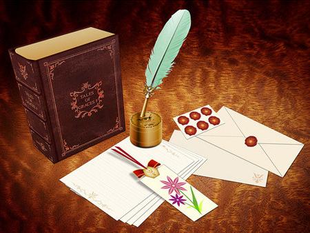 - Une plume accompagnée de son encrier