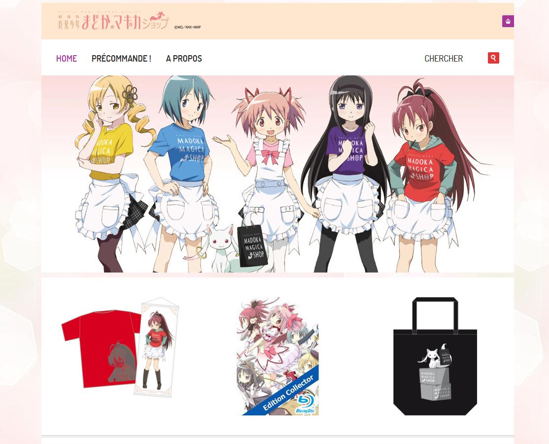 Cette boutique est déjà disponible sur internet à l'adresse Madoka-shop.fr. Vous pouvez d'ores et déjà réserver des produits pour cet événement, comme des packs Madoka, Mami, Kyôko, Sayaka, Homura, et ensuite venir les chercher sur le stand de l'éditeur.