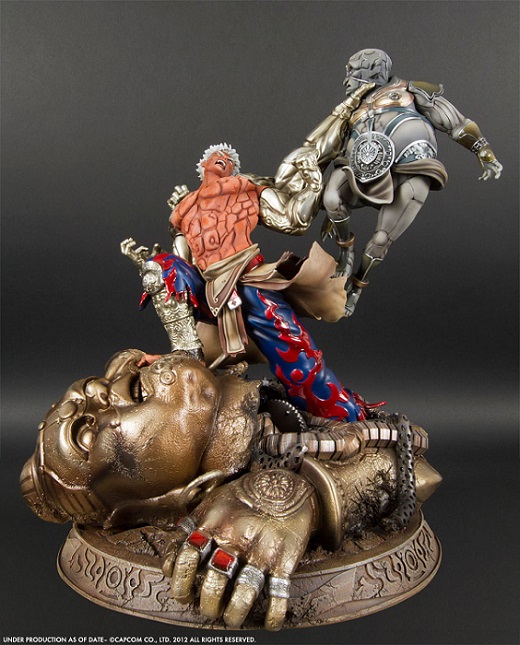 La direction artistique générale du jeu, et plus particulièrement du personnage principal permet de nombreuses audaces. Les différentes parties de sa tenue alternent les textures mates et brillantes, les effets d’usure ou les métaux. Sa peau si particulière a demandé un travail de peinture spécial pour obtenir ce résultat. Bien sûr, tout l’enjeu de la sculpture était de faire ressortir la rage et la puissance d’Asura tout en respectant les détails d’origine.