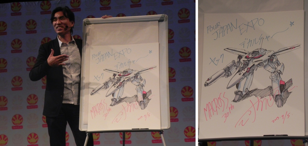Après la venue de Haruhiko Mikimoto en 2012, la saga Macross (Robotech) était une nouvelle fois à l'honneur pour l'édition 2013 de Japan Expo, grâce à la présence de son père spirituel : Shôji Kawamori. Présent sur les trois derniers jours du festival, le mecha-designer et réalisateur à la très riche carrière a participé à de nombreux rendez-vous sur le salon, dont le point d'orgue fut une large conférence publique. Nous vous proposons de découvrir ce passionnant exposé biographique, conclu par un magnifique dessin public.