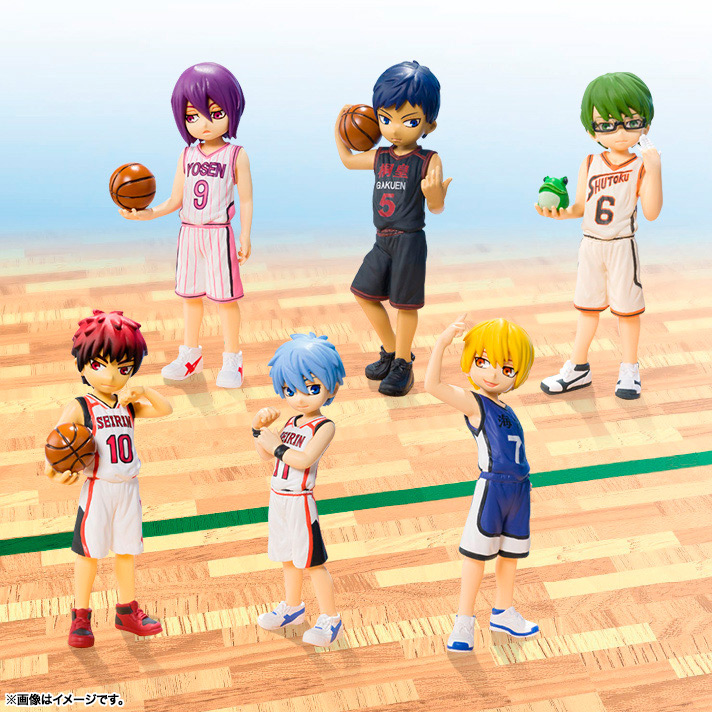 Ce sont 6 personnages qui seront disponibles à partir de décembre au prix fabricant de 700 yen (entre 5 et 6€) pièce : Atsushi Murasakibara, Daiki Aomine, Ryôta Kise, Shintarô Midorima, Taiga Kagami, et, bien sûr, Tetsuya Kuroko.