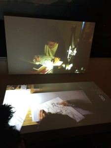 Ensuite, nous repartions dans un sympathique dédale de planches toutes aussi impressionnantes les unes que les autres. Parfois il arrivait qu'une page soit mise à part avec une reconstruction de celle-ci en tableau : un peu difficile à expliquer, mais vous comprendrez tout de suite avec les photos en dessous. Mais plus on avançait et plus on ne pouvait qu'être surpris : en effet, il y avait aussi par exemple juste après des planches interactives. Dans l'idée, des effets d'animation étaient rajoutés à aux planches originales par le biais d'un rétroprojecteur, et le rendu final était vraiment étonnant mais diablement efficace ! Bien sûr, cela était fait sur des planches emblématiques que les lecteurs reconnaitront sans peine.