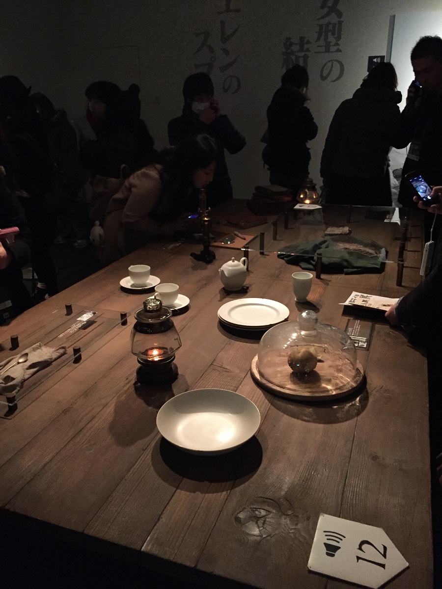 Enfin, on attaquait une partie un peu plus cosplay, avec les reproductions des objets du manga. Pour le coup personnellement je trouvais certains trucs vraiment intéressants comme les lames qu'utilisent les personnages, la table typique avec plusieurs objets emblématiques ou bien même la clé que possède Eren ainsi qu'une reproduction des portes de la cave de sa maison. Après il était aussi possible de faire la queue pendant un petit moment juste pour toucher la réplique de l'écharpe de Mikasa, mise sous verre avec un petit espace pour laisser la main seulement : pour le coup j'ai trouvé ça un poil ridicule mais bon...