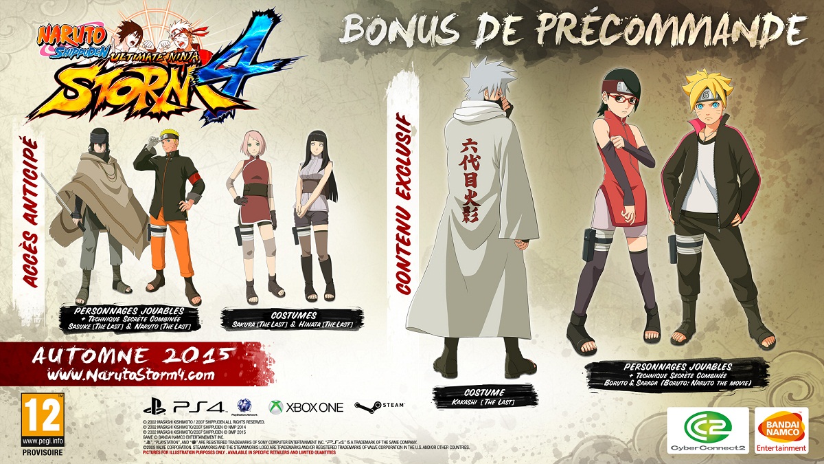 - Boruto en personnage jouable – exclusif aux précommandes, ne sera pas disponible en vente par la suite ;