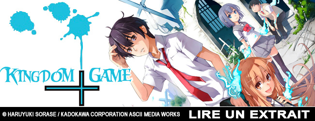 Tandis que son premier tome est attendu chez Tonkam pour le 9 septembre, le manga Kingdom Game s'offre non seulement une bande-annonce, mais aussi un extrait que vous pouvez découvrir sur notre site en cliquant sur la bannière ci-dessous.