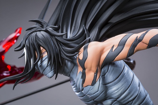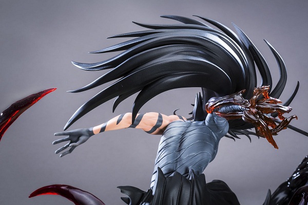 Présenté en pose d'attaque, Ichigo utilise ici le Getsuga Tensho, une technique qui lui coûtera ses pouvoirs de Shinigamis. L'intensité de son Reiatsu est telle que son apparence est complètement modifiée. Son corps affiche sa puissance à travers une musculature marquée et des émissions de Reiatsu qui jaillissent de toute part. Son épée, formée de la même énergie, est prête à s'abattre sur son adversaire tandis que sa chevelure est figée en plein mouvement, apportant ainsi à la statue une touche de dynamisme indispensable.