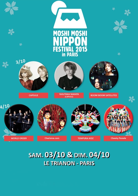 Pour rappel, ce festival musical se tiendra le week-end du 3 & 4 octobre 2015 au Trianon de Paris, et réunira de nombreux artistes et groupes : Capsule, Boom Boom Satellite, Charisma.com et Tempura Kidz. Les Cheeky Parade ouvriront la deuxième journée.