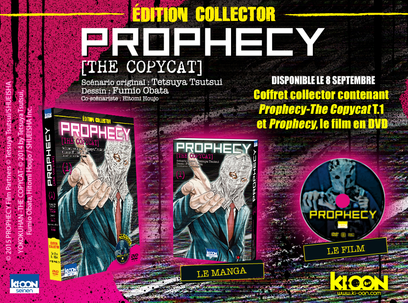 En effet, à l’instar de ce qu'il avait proposé pour Secret, l'éditeur a décidé de proposer une édition qui, en plus de contenir le premier tome de Prophecy the Copycat, proposerale film live inédit de Prophecy, sorti en juin 2015 dans les salles obscures japonaises. Vous pourrez d'ailleurs trouver ci-dessous une bande-annonce de cette adaptation live. Le coffret coûtera 17,90€.