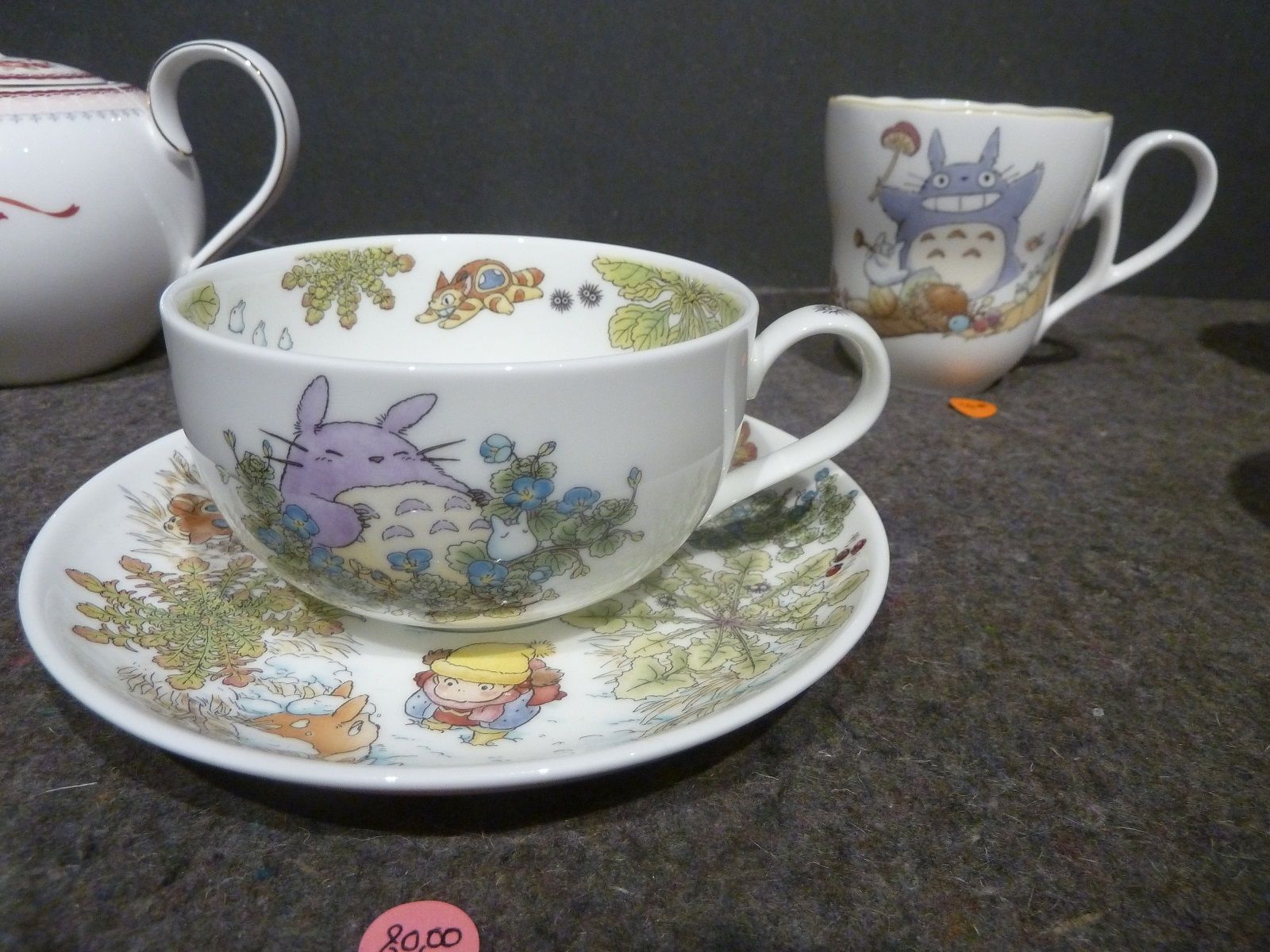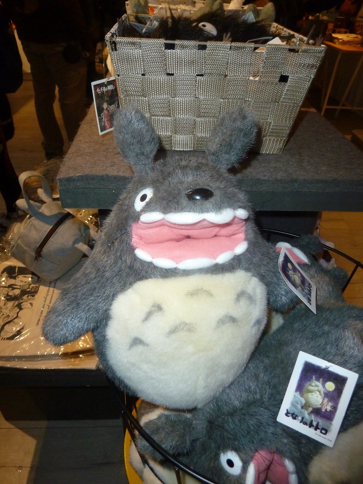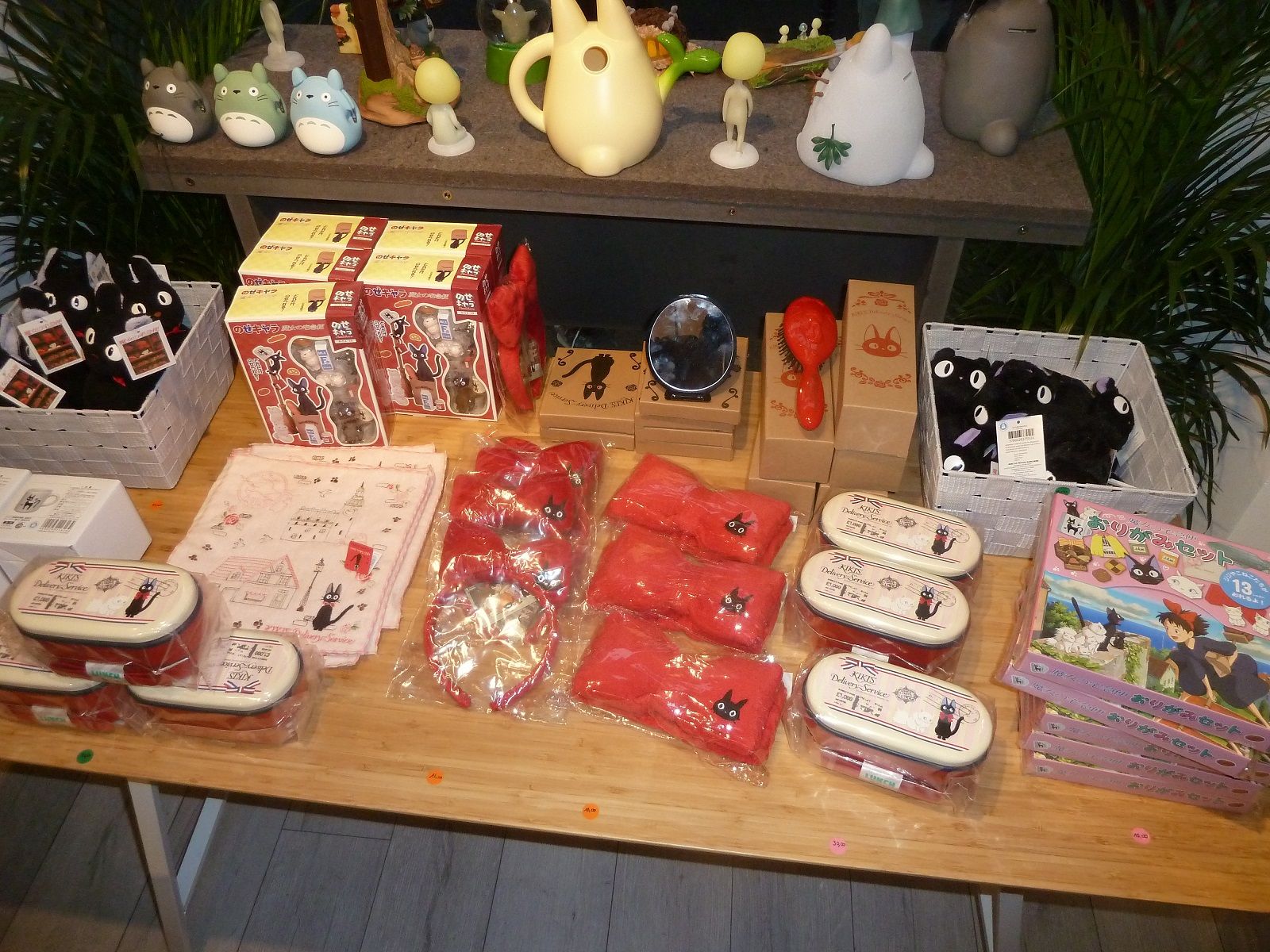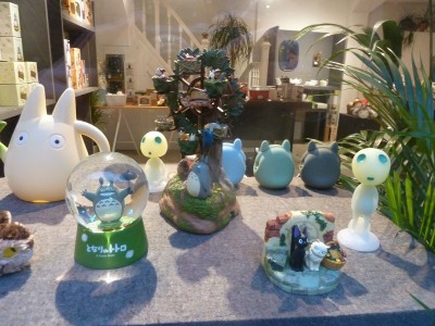 Avec ses vitrines lumineuses et décorées aux couleurs des oeuvres du studio, le petit magasin attire facilement l'oeil, et une fois à l'intérieur on est d'abord séduit par le cadre assez chaleureux et par les musiques des films de Ghibli qui passent. L'ensemble est plutôt bien agencé pour mettre les produits en valeur, et la plupart des films de studio (pas tous, il en manque, comme Le vent se lève ou Le Conte de la Princesse Kaguya) sont représentés plus ou moins fortement. Concernant les produits en eux-mêmes, il n'y a évidemment que de l'officiel, surtout distribué en France par Semic, de natures très variées (peluches, vaisselle, ustensiles, figurines, porte-clés, jeux de cartes, et même une poêle représentant ce cher Calcifer), et dans des gammes de prix pouvant être très différentes. Seul petit bémol de ce lieu plutôt sympathique : les tarifs, justement ! La plupart des produits s'avèrent un peu plus chers qu'ailleurs.