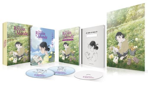 Prévue le 9 janvier au prix de 49,99€, cette édition limitée proposera bien sûr le film en DVD et en Blu-ray en vostf et en vf, mais également un nombre conséquent de bonus. Au programme, la bande originale du film, un livret d’analyse du film de 48 pages au format manga, le dossier de presse du film, un cahier de dessin de l’héroïne Suzu, un poster du film, et plusieurs suppléments vidéo : entretien avec le réalisateur Sunao Katabuchi sur la genèse et le développement du film (40’), entretien avec le producteur Masao Maruyama (12’), et un documentaire "Hiroshima et Kure : avant et maintenant" (comparaison des lieux évoqués dans le film et leur aspect réel aujourd’hui).