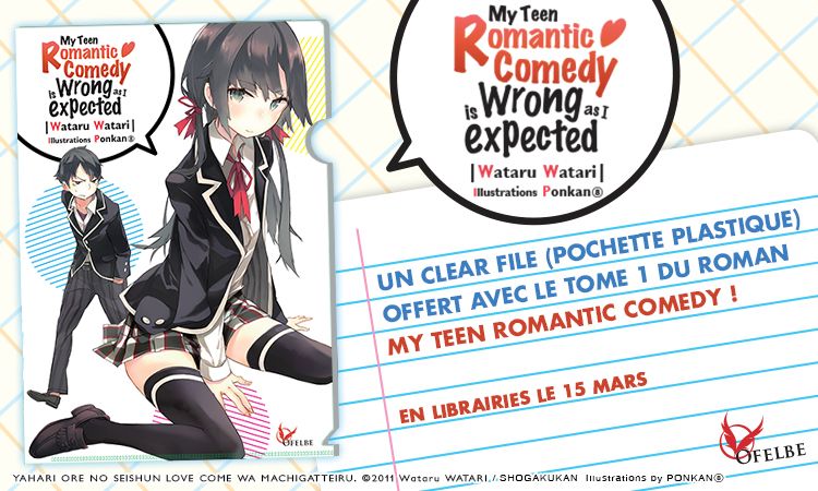 Les 15-16 mars, les éditions Ototo et Ofelbe lanceront en France le manga No Game No Life et le light novel My Teen Romantic Comedy, et pour l'occasion elles réservent un petit cadeau aux fans : quiconque achètera le tome 1 d'une de ces oeuvres aura droit à un clear file (pochette plastique) aux couleurs de la série correspondante et de dimensions 21x29,7cm.