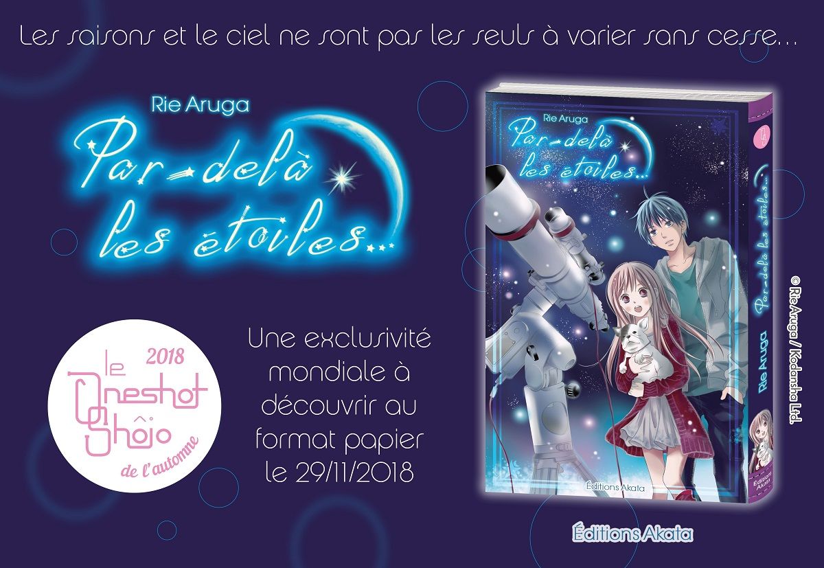 Après l'avoir proposé en version numérique il y a quelques mois (lire la news), les éditions Akata vont sortir en version papier le manga Par-delà les étoiles. Première oeuvre de Rie Aruga, l'autrice de Perfect World, cette série courte en 6 chapitres n'est jamais sorti en volume relié au Japon, et sa publication en version papier en France est donc une exclusivité mondiale !