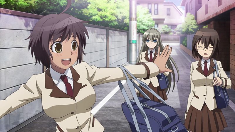 Mais la différence la plus concrète c’est l’ajout de nombreuses scènes slice-of-life au cours des épisodes. Bien que cela puisse être illogique dans une œuvre où la violence est légion, ces scènes ont leur utilité propre, à savoir donner de la profondeur à ces moments de tranquillité précaire entre deux combats. Bien évidemment celles-ci participent à un certain étirement de l’intrigue en remplissant quelques minutes de ces intermèdes mais en cela l’intrigue n’est pas dénaturée pour autant. Déjà ces scènes précisent le caractère de nos personnages et le meilleur exemple est le caractère possessif de Kurumi qui est à maintes reprises ressassé dans des moments légers. Ces scènes slice-of-life donnent également plus de présence d’écran aux personnages secondaires tels les membres de l’Unité M qui participent à un festival d’été absent du manga original, ce qui permet de renforcer les relations entre ces personnages, de les voir comme des humains lambdas et non comme des soldats d’élite. Et bien évidemment les personnages secondaires les plus sollicités restent Sayako et Nozomi, les camarades du lycée d’Asuka.