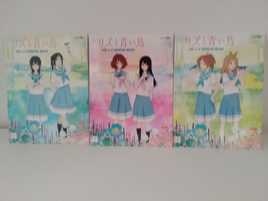 Côté bonus physiques, on trouve tout d'abord 3 cartes illustrées, chacune aux couleurs de deux demoiselles du film, parmi lesquelles, bien sûr, les héroïnes du long-métrage, mais aussi celles de Sound! Euphonium. Sans être les bonus les plus intéressants, ces cartes sont très jolies et bien imprimées sur un carton suffisamment épais.