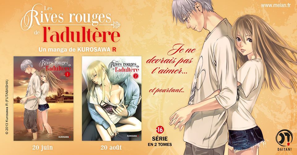 Après avoir annoncé plus tôt dans la semaine le premier titre de leur toute nouvelle collection Daitan! (lire la news), les éditions Meian présentent aujourd'hui la deuxième série de cette collection, qui arrivera le 20 juin: Les Rives rouges de l'adultère.