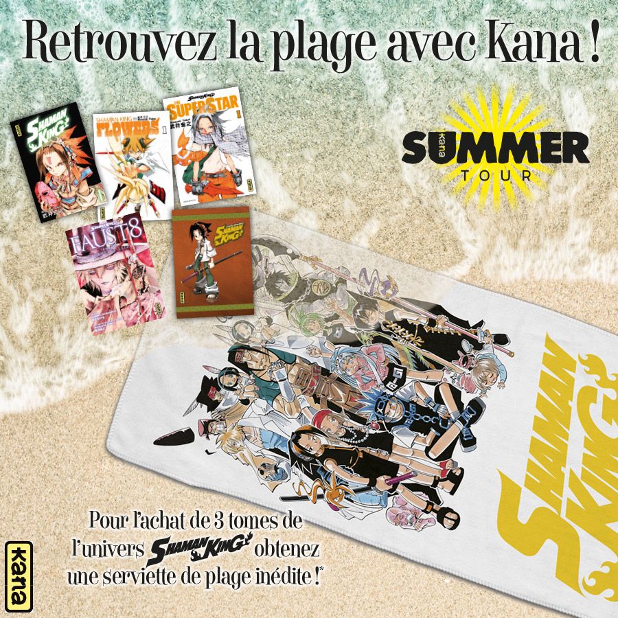 Enfin, une opération promotionnelle: pour l'achat simultané de 3 tomes de l'univers Shaman King (quelle que soit la série), vos pourrez recevoir en cadeau une serviette de plage, dans la limite des stocks disponibles et au sein des librairies participantes.