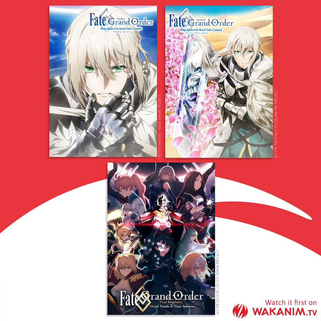 La plateforme Wakanim a annoncé l'arrivée dans son catalogue, dès ce mercredi 19 janvier à 17h, des trois films Fate/Grand Order, à savoir Fate/Grand Order Camelot Wandering; Agateram, Fate/Grand Order Camelot Paladin; Agateram et Fate/Grand Order Grand Temple of Time: Solomon.