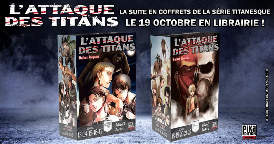 Maintes fois réclamée, la suite des coffrets de L’Attaque des Titans débarque bientôt chez Pika Edition, avec la sortie des coffrets 4 et 5 le 19 octobre, tandis que les coffrets suivants arriveront en 2023.