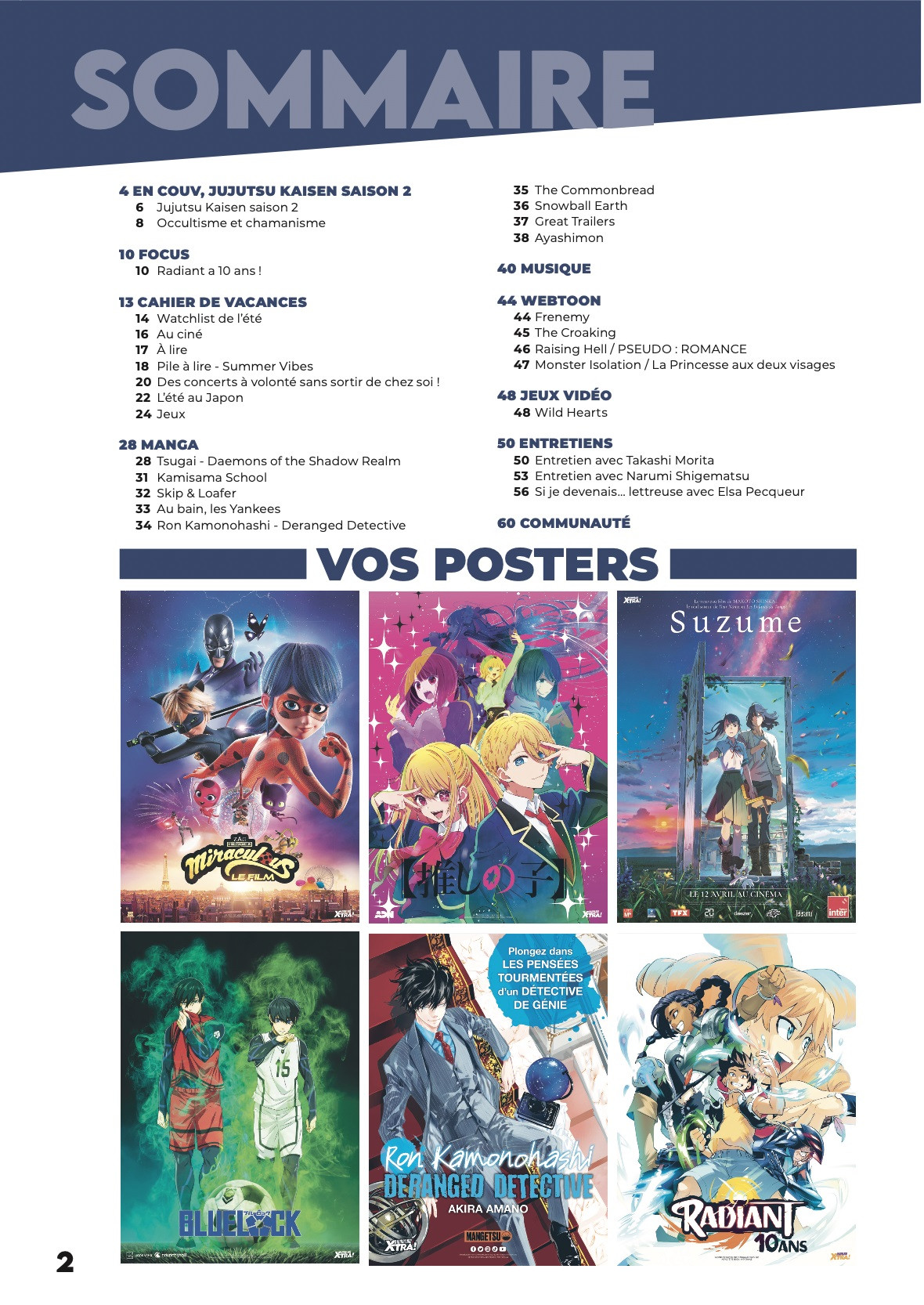 Une dernière (grosse) surprise vous attend : 6 posters inédits sont disponibles dans ce numéro 70 ! Miraculous Ladybug, Oshi no Ko, Suzume, Ron Kamonohashi, Radiant ou encore Blue Lock, de quoi ravir tout le monde !