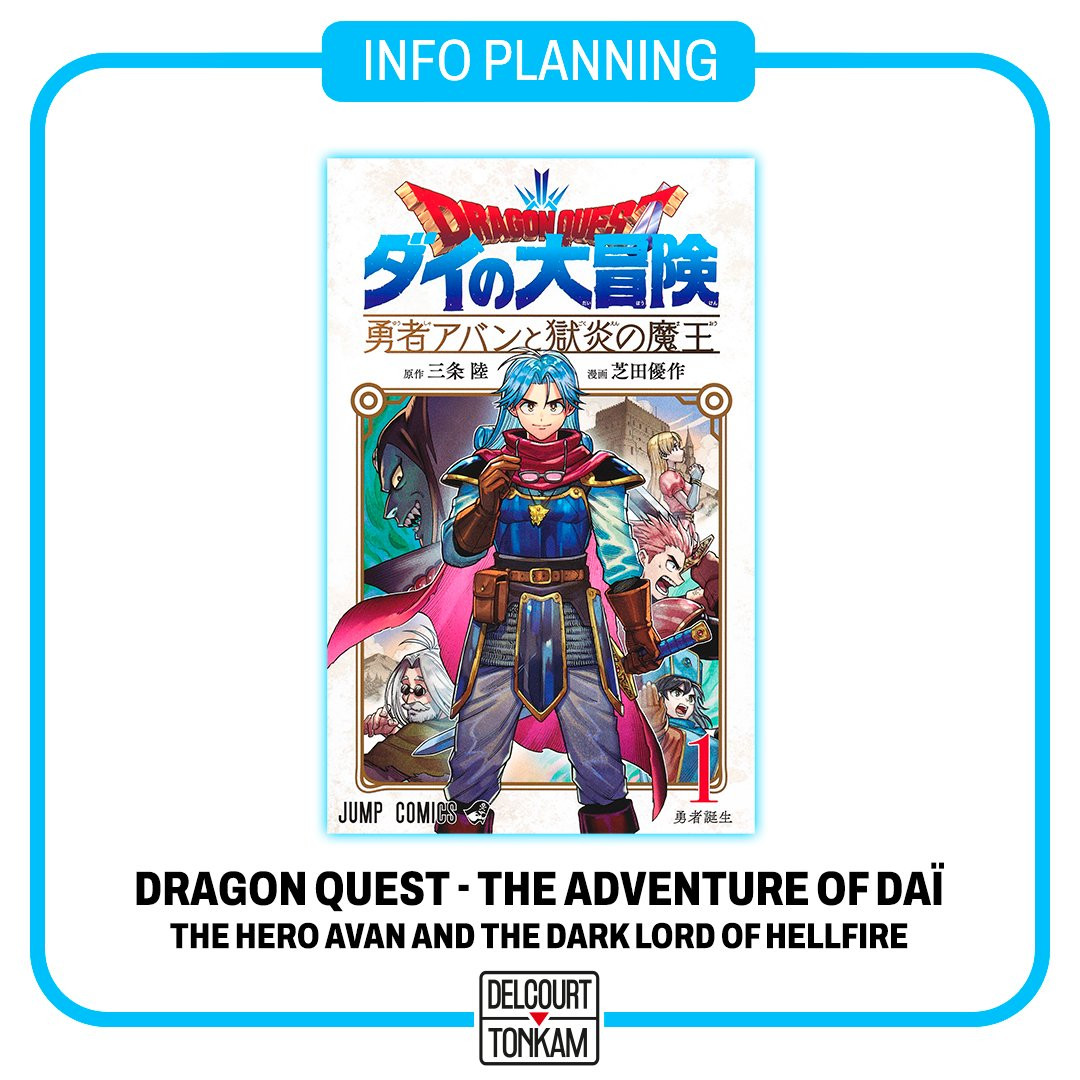 Initialement annoncé en février 2023 par les éditions Delcourt/Tonkam pour une sortie prévue à partir de juillet dernier (lire la news), puis repoussé à une date inconnue à cause de problèmes de validation auprès des ayant-droit japonais (lire la news), le manga Dragon Quest - The adventure of Dai - Avan et le seigneur du mal possède enfin une nouvelle date de parution dans notre pays: son premier volume arrivera en 2024, et la série adoptera finalement le titre anglais/international Dragon Quest - The Adventure of Daï - The Hero Avan and the Dark Lord of Hellfire.