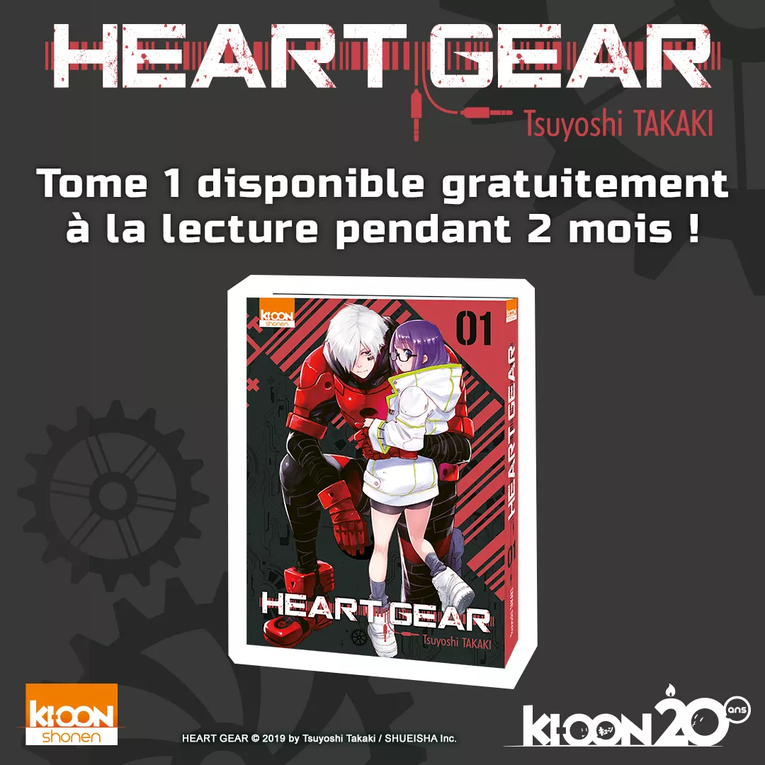 Pour célébrer le retour du manga Heart Gear, les éditions Ki-oon offrent à leurs lecteurs une jolie opportunité : le premier tome de cette série est disponible en ligne gratuitement pendant deux mois !