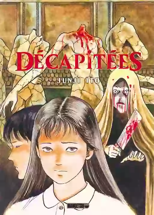Dès le 22 janvier 2025, on pourra découvrir en librairies Décapitées, un recueil de 392 pages qui sera vendu 24,95€, qui est initialement sorti au Japon en 1991 chez Asahi Sonorama, et qui regroupe 12 histoires courtes initialement prépubliées dans le magazine Gekkan Halloween entre 1988 et 1991. Un jeune homme qui se réveille un matin avec du fil écarlate cousu à même la peau, un rituel funéraire ancestral qui retient les âmes des morts, un cirque maléfique aux funestes numéros, un meurtre sanglant dans une salle d’art remplie d’étranges sculptures décapitées, un cimetière peuplé d’épouvantails aux allures de linceuls… Nul ne pourra échapper à l’insidieuse malédiction du maître de l’horreur, qui s’accomplit, tel un couperet, dans chacun de ces douze récits à vous glacer le sang. Junji Ito montre l’étendue de son talent horrifique à travers 12 nouvelles, dont Frissons et Le Vieux Vinyle présents dans le tome 1 des Chefs-d’œuvre. Cette édition bénéficiera d'une préface et d'une analyse en fin d'ouvrage par Morolian, spécialiste francophone de l'auteur.