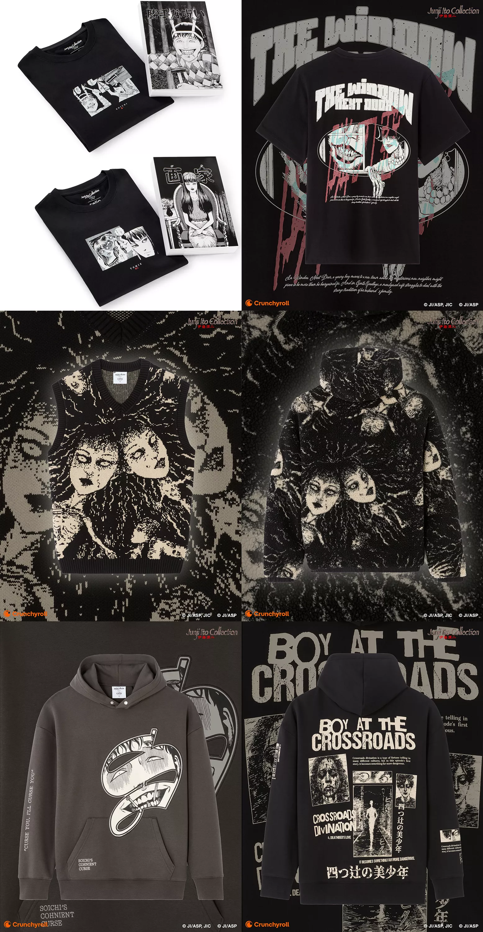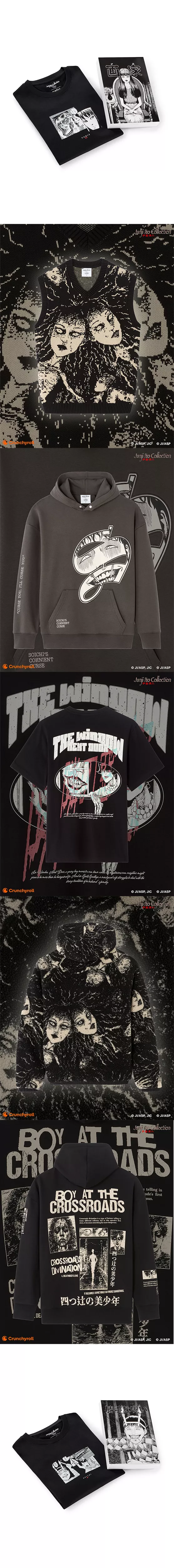 Cette collection rend hommage aux œuvres les plus marquantes du mangaka, dont Tomie, Spirale, L'amour et la Mort ou encore Soichi. Fidèle à l’esthétique dérangeante de Junji Ito, elle décline les manga sur des vêtements streetwears.