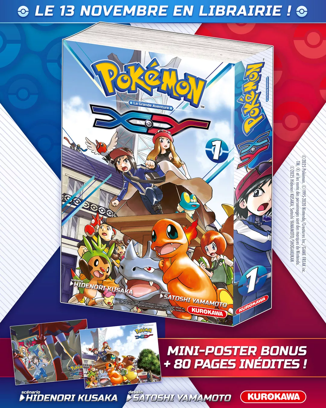 Initialement publié en France entre 2015 et 2017 avec un total de six volumes, le manga Pokémon X-Y de Hidenori Kusaka et Satoshi Yamamoto va revenir dès le mois prochain chez Kurokawa dans une nouvelle version enrichie.
