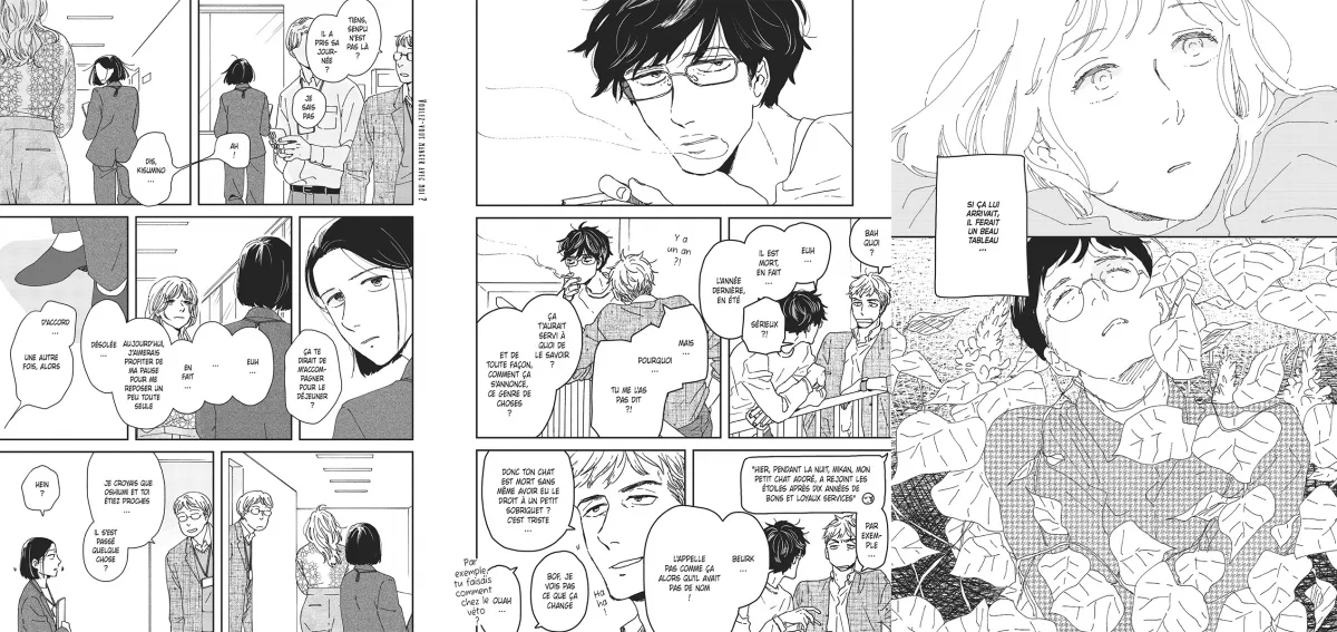 Vous retrouverez dans ce recueil les trois histoires courtes auparavant proposées par Akata en France en numérique (Voulez-vous manger avec moi ?, La Faucheuse et Cling Once, Blink Once), mais également des inédites qu’elle a publiées à des moments différents de sa carrière : des boy’s love, mais aussi des fanzines. Avec un total de sept nouvelles, ce one-shot apporte un nouvel éclairage sur son travail.