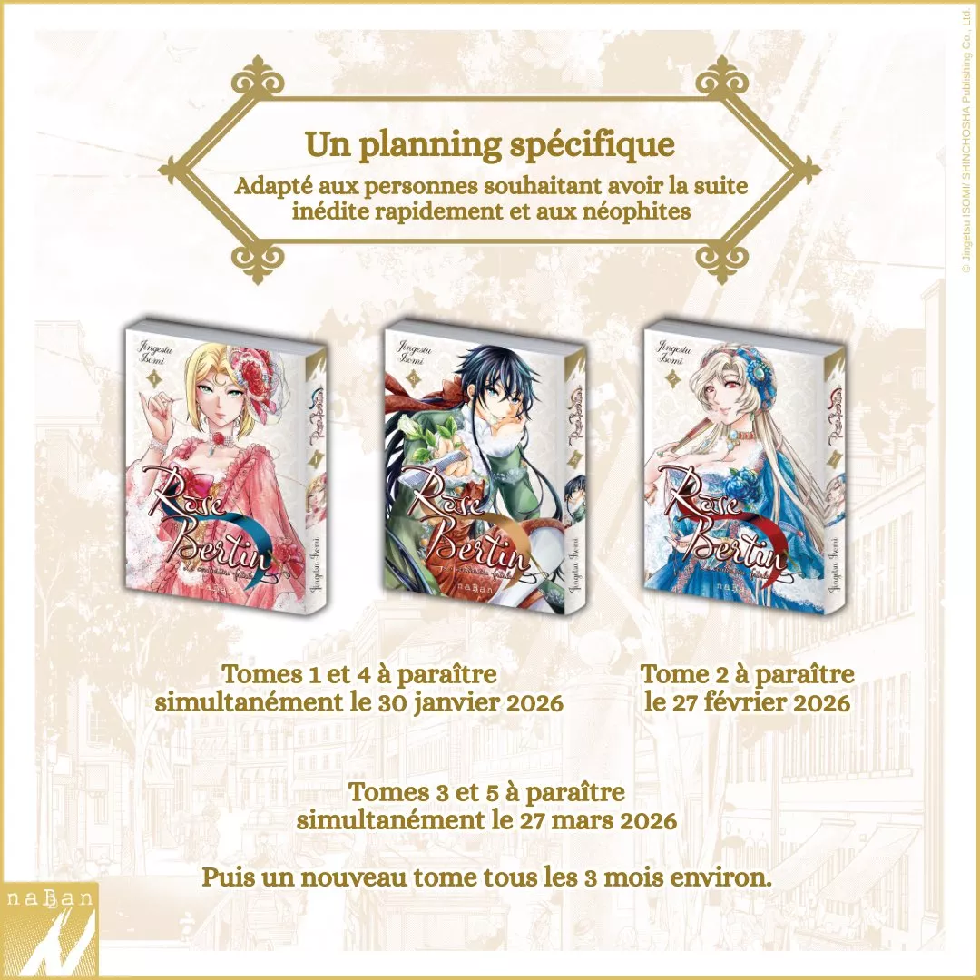 En août dernier, les éditions naBan annonçaient, pour notre plus grand plaisir, qu'elles reprendraient le manga Rose Bertin, la Couturière Fatale, laissé en plan après seulement trois tomes par son précédent éditeur Michel Lafon (lire la news). Et récemment, la maison d'édition a apporté toutes les précisions supplémentaires qui manquaient encore concernant ce retour !