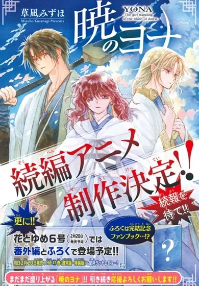 Excellente nouvelle pour les fans de l'œuvre, après 10 ans l'adaptation en anime va ce poursuivre, anime qui n'avait adapté que les 9 premier tomes, et petit spoilers nous n'avons pas encore vu énormément Yona en action, espérons que la fanbase pourra s'agrandir aussi grâce à son retour.🙂