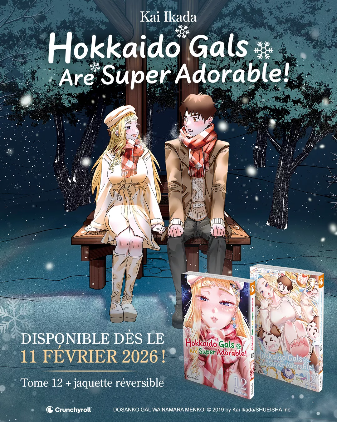 Prévu aux éditions Crunchyroll le 11 février 2026 au prix de 7,29€, le tome 12 du manga Hokkaido Gals Are Super Adorable! aura droit à un petit bonus, à savoir une jaquette réversible, le tout sans augmentation de tarif.