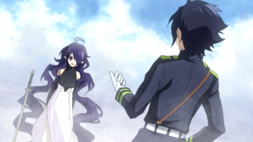 Mais quid des personnages ? Force est de constater que dans cette fournée d’épisodes, les têtes d’affiches déjà connues ont mûri, un peu rapidement certes, mais sont devenues plus agréables à suite, certains personnages mettant de côté leurs mentalités de têtes à claques. C’est notamment le cas de Yûichirô qui est aux antipodes de celui qu’il était dans le seconde épisode de la saga, à tel point qu’il devient parfois agaçant par son côté niais et ses grands discours sur la famille. Finalement, les plus intéressants sont les membres de la famille Hiiragi et son leader, Kureto, aussi énigmatique que l’intrigant Glenn tandis que quelques nouveaux membres de l’Armée Démoniaque Impériale du Japon attirent aussi notre curiosité. Enfin, le personnage de Mika s’affirme enfin, restant parfois prévisible, mais développant chez le spectateur un attachement et une volonté de découvrir plus en détail sa psychologie plus profonde que chez les autres figures.