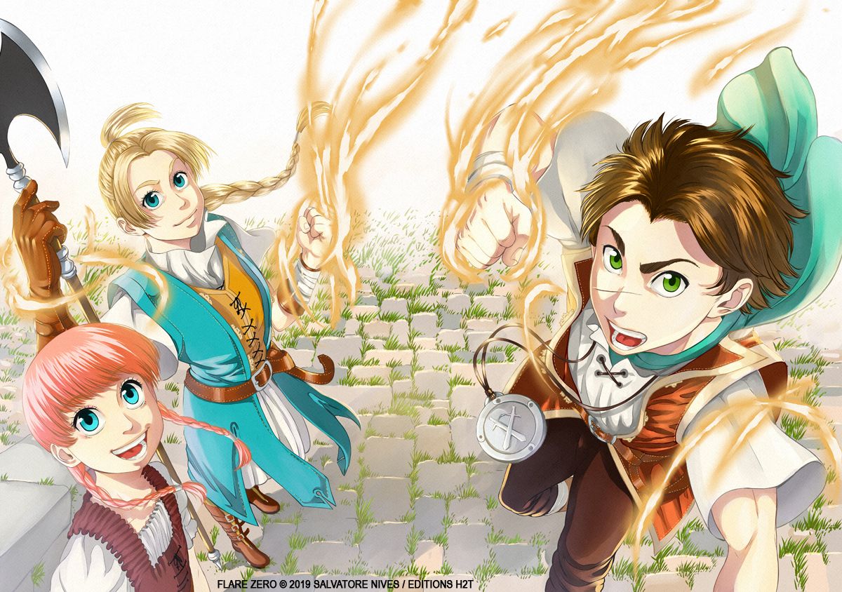 Avant de revenir sur cette ouverture, il convient de parler du projet de Salvatore Nives, et de sa démarche d'auteur qui a aboutit au Flare Zero que l'on connait. Avant d'être édité aux éditions H2T, et sans doute bien avant même, le jeune auteur imagine un groupe de personnages. De cet ensemble, il puise deux protagonistes distincts : Draco et Aurora. Ces deux derniers ont alors droit à leur propre histoire, Flare Zero, que l'auteur qualifie de spin-off à son grand univers, en ce qui concerne le premier jet de la série. Le projet ressemble d'abord à un roman graphique, plus intimiste et poétique selon les dires de l'auteur. Sa formation après le Silent Manga Audition lui fait voir la chose autrement, et sa collaboration avec les éditions H2T lui permet de coucher sur papier une autre version de son œuvre. Le Flare Zero que l'on connait a une forme différente, mais aussi un rôle différent dans l'ensemble qu'il a imaginé. Ce n'est plus un simple spin-off, mais plutôt un préquel à la grande histoire qu'il a inventé, des années auparavant.