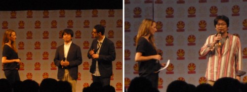 Enfin, parmi les invités de dernière minute furent annoncés deux autres réalisateurs : Toshiyuki Kubooka (Berserk, l'âge d'or, Giant Robo) et Tatsuyuki Tanaka (animateur sur Akira, Roujin Z, Bubblegum Crisis,...). Nous devons leur venue à la firme Toyota, qui profitait du salon pour présenter en France le projet Peace Eco Smile, ou P.E.S. (rien à voir avec un quelconque jeu de foot !). En effet, tous deux ont réalisé l'une des parties de ce regroupement de courts métrages promotionnels. Hélas, leur venue était principalement liée à cet évènement d'auto-congratulation, même si Toshiyuki Kubooka se sera libéré le temps de quelques dédicaces sur le stand Dybex.