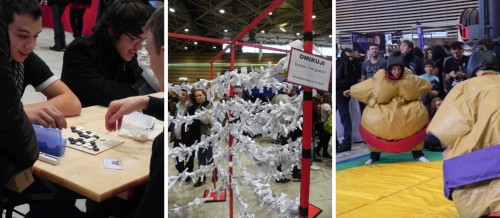 Non loin de là, nous pouvions également retrouver les habituels jeux de plateau traditionnels (Go, Mahjong) enseignés par quelques associations locales. Cet espace de jeu jouxtait un espace organisé par la jeune association Ota Sekai. Au programme, quelques jeux plus ou moins issus des matsuris, les kermesses japonaises, ainsi que des espaces couverts pour faire des vœux et écouter des prédictions. Point d'orgue de cette mini-foire : un ring de Sumo, avec les combinaisons adéquates pour se défouler allègrement !