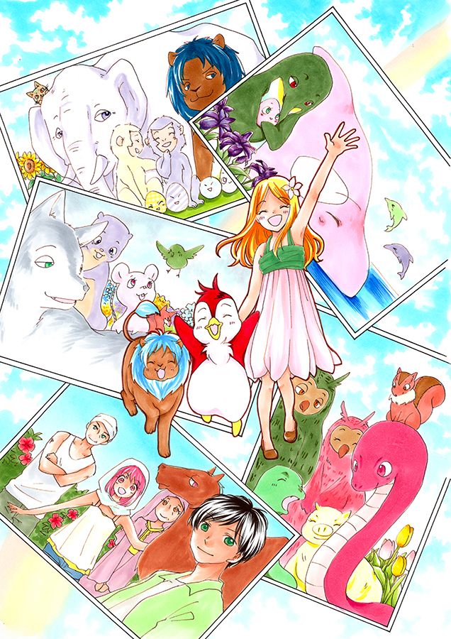A cela s'ajoute le beau travail sur les couleurs, entièrement faites à la main au feutre, qui enrichissent beaucoup la série et qui ne font pas du tout gadget, d'autant que la mangaka joue beaucoup dessus en offrant des personnages aux couleurs assez étonnantes : Momo a le pelage rouge, Noah a la crinière bleue, Lily a les cheveux jaunes et orange, et c'est aussi le cas de beaucoup d'autres animaux, pour un rendu encore plus merveilleux qui nous éloigne bien de notre réalité.