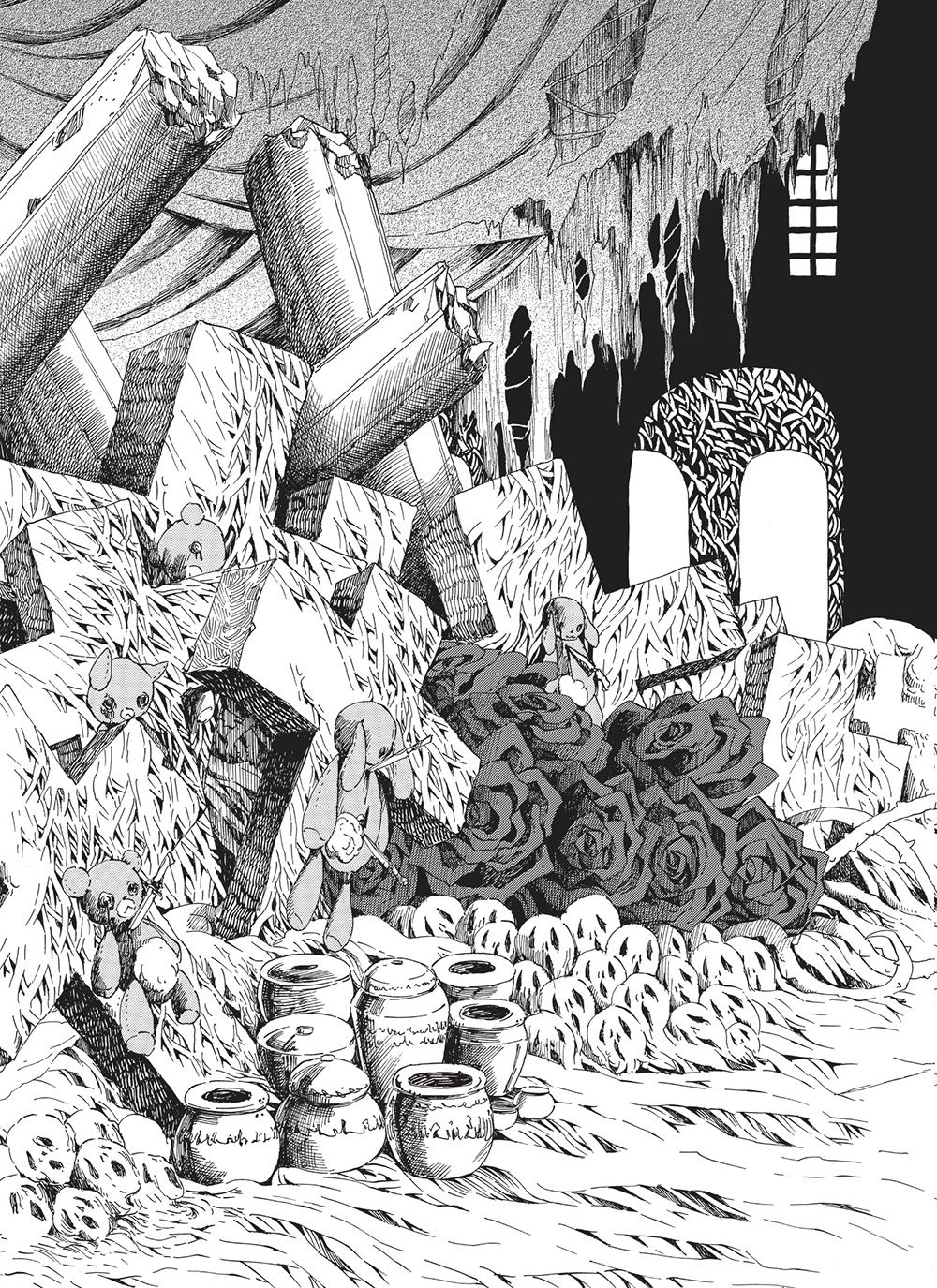 Après un premier volume où elle séduisait beaucoup dans sa peinture d'un univers recelant quelque chose de très macabre derrière ses apparences mignonnes, Sayaka Mogi prend dans le deuxième tome de son oeuvre une voie assez linéaire, qui est donc marquée par la fuite du Prince vers le sous-sol. Là-dessus, la recette est classique: au fil de son périple, de sa fuite pour échapper à Charon, notre héros recroise la route de nombre de figures du passé qu'il a autrefois assassinées, mais sous des allures mêlant le mignon et l'inquiétant. C'est bien sur ce dernier point que l'autrice séduit le plus, en offrant des petites idées de design efficaces ainsi que quelques variations de style intéressantes.