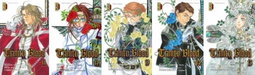 Alors que le roman était toujours en cours de parution, le manga Trinity Blood (トリニティ・ブラッド - Trinity Blood), réalisé par Kiyô Kyûjyô débute dans le magazine Asuka des éditions Kadokawa Shoten à partir de mars 2004. Le magazine étant mensuel, la série paraît de manière assez lente, avec une moyenne de deux tomes par an. Elle compte seize volumes au pays du soleil levant depuis mars 2013.